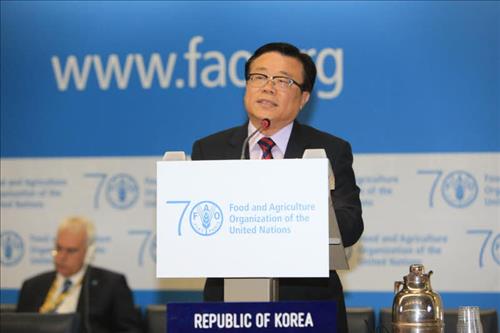 ▲ 이동필 농림축산식품부 장관은 8일(현지시간) 이탈리아 로마에서 열린 제39차 유엔식량농업기구(FAO) 총회에 참석해 기조연설을 했다. 이 장관은 기조연설에서 농촌 개발과 농업의 미래 성장 산업화 등을 위한 국제사회의 협력 강화를 촉구했다. (세종=연합뉴스)