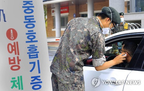 (서울=연합뉴스) 이영재 기자 = 군에서 발열 같은 증상을 보이는 중동호흡기증후군(메르스) 의심환자는 1명, 메르스 환자를 가까이 한 밀접접촉자는 3명이 각각 증가했다.