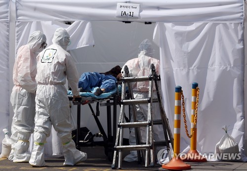 | △ 메르스 '치료병원'으로 이송된 의심환자 (서울=연합뉴스) 홍해인 기자 = 10일 오후 중동호흡기증후군(메르스) 치료병원으로 지정된 서울 동작구 신대방동 보라매병원에 의심환자가 이송돼 환자 대기실로 옮겨지고 있다. 보건복지부 중앙메르스관리대책본부는 이날 음압격리실에서 중증 확진환자를 진료하는 대학병원급 '치료병원' 16곳과 중증 의심환자를 진료하는 병원급 '노출자 진료병원' 32곳을 운영한다고 밝혔다. 치료병원으로 서울 보라매병원, 대전 충남대병원, 경기 분당서울대병원, 충남 단국대 병원 등이 운영되며 노출자 진료병원으로는 서울 서북병원, 대전 대청병원, 경기 수원의료원 등이 지정됐다. |