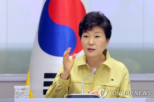 | △ 박근혜 대통령이 지난 8일 오후 서울 세종로 정부종합청사 범정부 메르스 대책지원본부 상황실을 방문, 중동호흡기증후군(메르스) 대응 추진상황 점검회의를 주재하고 있다. |