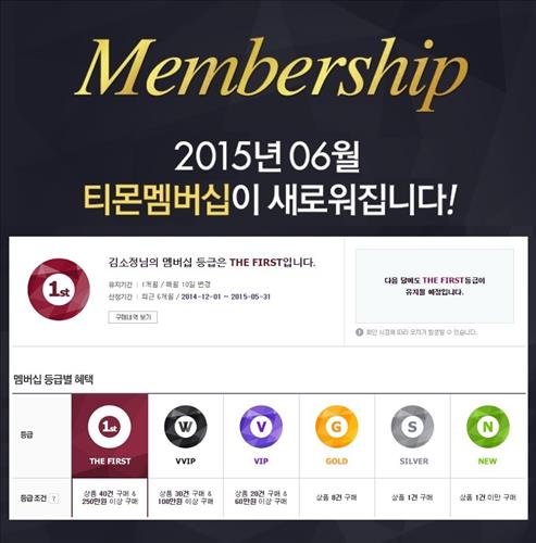 (서울=연합뉴스) 신호경 기자 = 온라인쇼핑사이트 티몬(www.tmon.co.kr)이 11일 멤버십 제도를 개편하고 최상위 등급 고객에 대한 혜택을 늘렸다.
