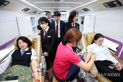 | △ (부산=연합뉴스) 조정호 기자 = 4일 부산시 해운대구에 있는 해운대센텀호텔 임직원들이 사랑의 헌혈을 하고 있다. 이들은 오는 14일 세계헌혈자의 날을 맞아 생명을 나누는 헌혈 운동에 동참했다. 이 호텔은 네팔 이재민 구호를 위한 성금 500만원을 대한적십자사에 전달하기도 했다. 2015.6.4 ccho@yna.co.kr |