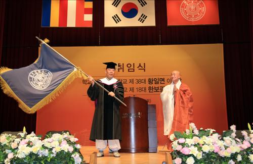 (서울=연합뉴스) 설승은 기자 = 동국대는 11일 교내 본관에서 제18대 한태식 총장과 제38대 황일면 이사장의 합동 취임식을 열었다고 밝혔다.