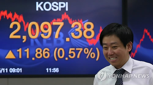 이날 코스피는 전날보다 5.29포인트(0.26%) 오른 2,056.61에 장을 마쳤다.