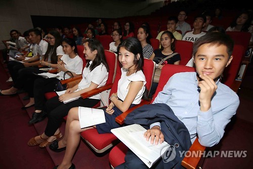 | △ 서울대, 카자흐서 첫 입학 설명회 개최 (알마티=연합뉴스) 김현태 특파원 = 서울대학교가 11일 중앙아시아의 카자흐스탄에서 처음으로 입학설명회를 개최했다. 카자흐 최대 도시 알마티에서 열린 행사에서 대입을 앞둔 현지 인재들이 서울대 진학을 위한 구체적인 방법에 대해 설명을 듣고 있다. 2015.6.11 mtkht@yna.co.kr |