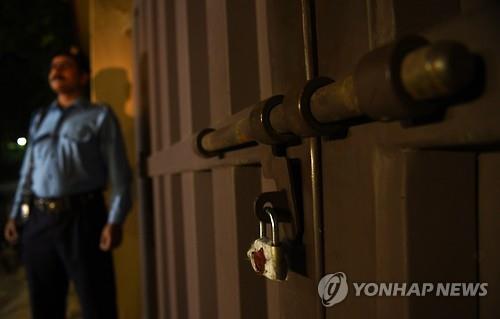 | △ 자물쇠 채워진 세이브더칠드런 이슬라마바드 지부 출입문 (EPA=연합뉴스) |
