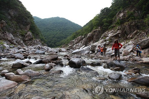 | △ (울진=연합뉴스) 성연재 기자 = 환란을 피하기 위해서는 아웃도어에서 신선한 바깥 공기를 쐬며 걷는 것이 좋을 지 모른다. 대한민국 최고의 오지 중의 오지 왕피천의 굴구지마을과 용소를 트레킹해보자. 2015.6.12 polpori@yna.co.kr |