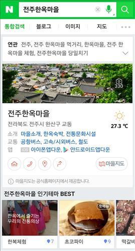 예를 들어 이용자가 '전주 한옥마을'을 검색하면 화보 뷰어로 한옥마을 구석구석을 보여주고 한복체험, 막걸리 골목과 같은 인기 테마와 전동성당, 경기전 등 유명 관광지를 한 번에 추천해준다.