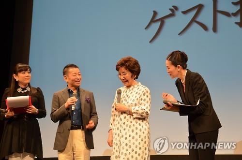 | △ 배우 사미자가 12일 도쿄의 주일 한국문화원에서 열린 개막식에서 인사를 하고 있다. (주일 한국문화원 제공) |
