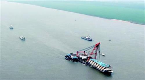 침몰선은 물살이 급한 사고지점에서 10㎞가량 떨어진 안전수역으로 옮겨졌으며 전문가들이 승선해 사고 조사를 벌이고 있다.