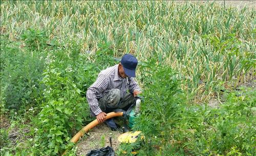 | △ (보은=연합뉴스) 박병기 기자 = 충북 보은군 수한면에서 13일 한 농부가 바싹 마른 마늘밭에 물을 대기 위해 양수기를 점검하고 있다. 2015.6.14 bgipark@yna.co.kr (끝) |