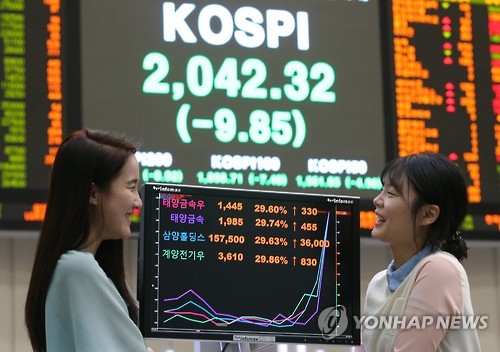 이날 코스피는 전날보다 9.85포인트(0.48%) 내린 2,042.32로 마감했다.