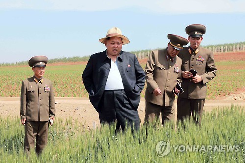 | △ 군부대 산하 종자연구농장 찾은 김정은 (평양 조선중앙통신=연합뉴스) 김정은 북한 국방위원회 제1위원장이 인민군 제810군부대 산하 1116호 농장을 최근 시찰했다고 조선중앙통신이 1일 보도했다. 2015.6.1 photo@yna.co.kr |