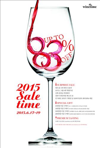 이 행사는 와인타임이 매년 한 차례만 개최하는 최대규모의 프리미엄 와인 할인 행사다. 모두 110여 브랜드 와인과 20여 종 와인 글라스 등을 최대 83%까지 할인하며 행사 기간에 매장별로 와인 무료 시음과 증정 행사도 한다.