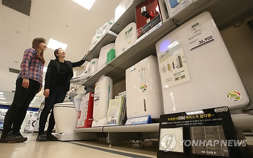 (서울=연합뉴스) 인교준 기자 = 건조한 날씨와 메르스 공포로 공기청정기 매출은 훨훨 날고 있는 반면 제습기 매출은 죽을 쓰고 있다.