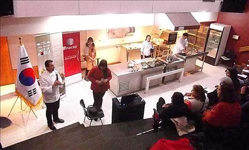 특강에는 칠레기술대학 요리학과 학생들을 비롯해 한국 음식에 관심 있는 대학생과 일반인 등 70여 명이 참가했다.