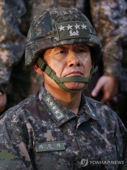 (서울=연합뉴스) 이영재 기자 = 최윤희 합참의장이 17일 육군 최전방 일반전초(GOP)를 방문해 장병을 격려하고 북한의 기습 도발 가능성에 대비해 만반의 준비를 할 것을 지시했다고 합동참모본부가 밝혔다.