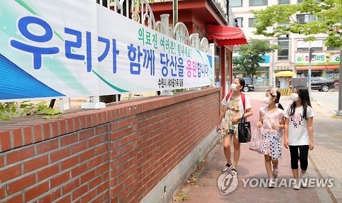 (수원=연합뉴스) 강창구 김인유 기자 = "의료진 여러분, 힘내세요, 우리가 함께 당신을 응원합니다"