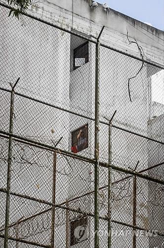 | △ 반정부 시위를 선동한 혐의로 군교도소에 작년 2월 수감된 베네수엘라 야당 지도자가 지난해 11월 창문을 통해 면회온 부인에게 손을 흔들고 있다.(EPA=연합뉴스DB) |