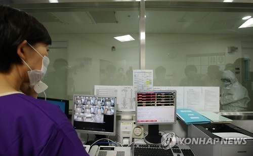 | △ 서울의료원, 음압격리병실 언론 공개 (서울=연합뉴스) 윤동진 기자 = 10일 오후 중동호흡기증후군(메르스) 노출자진료병원으로 지정된 서울 중랑구 서울의료원에서 의료진이 메르스 확진환자가 입원한 음압격리병실 업무를 보는 모습이 내외신 언론매체에 공개되고 있다. 최경환 국무총리 직무대행은 이날 오전 대국민담화를 통해 중동호흡기증후군(메르스) 감염병관리 중앙·지역거점 지정의료기관 명단을 발표했다. 2015.6.10 mon@yna.co.kr |