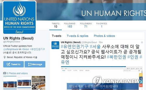 (서울=연합뉴스) 이상현 기자 = 유엔 북한인권사무소가 개소를 앞두고 공식 트위터와 페이스북 페이지를 개설했다.