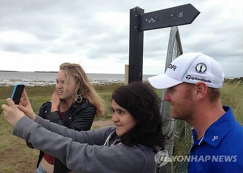 | △ 2014년 브리티시오픈 골프대회에서 공장 노동자로 대회 출전권을 획득한 존 싱글턴(잉글랜드)과 갤러리가 휴대전화로 사진을 찍고 있다. 2015년 US오픈 골프대회는 갤러리에게 대회 창설 120년 만에 처음으로 휴대전화 반입을 허용했다. |