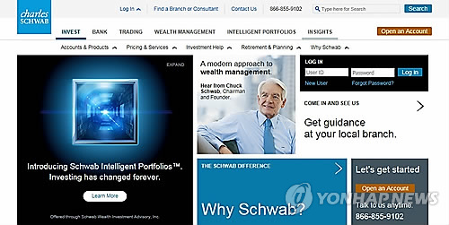 | △ 미국 인터넷은행 '찰스 슈왑' 웹사이트 갈무리 사진 |