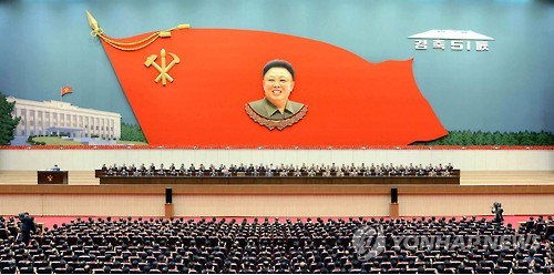 | △ 북한, 김정일 당사업 시작 중앙보고회 열어 (서울=연합뉴스) 북한이 김정일 국방위원장의 노동당 사업 시작 51주년을 기념하는 중앙보고대회를 18일 열었다고 노동신문이 보도했다. 이날 대회에서는 '김정일 유훈통치를 철저히 옹위하자'는 내용이 강조됐다. 2015.6.19 nkphoto@yna.co.kr |