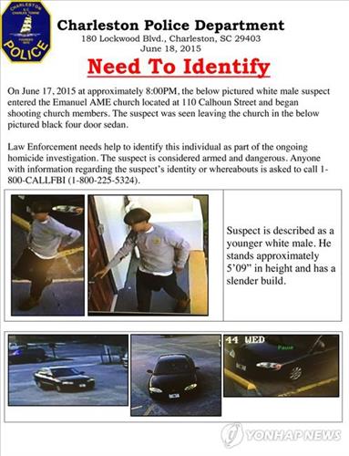 (워싱턴=연합뉴스) 심인성 특파원 = 미국 사우스캐롤라이나 주(州) 찰스턴의 흑인교회에서 17일(현지시간) 백인 청년의 '증오범죄'로 추정되는 총기난사 사건이 발생해 자칫 인종갈등으로까지 비화하는 것 아니냐는 우려가 나오고 있다.