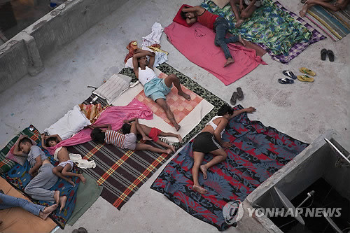| △ 인도 혹서로 1천700여명 사망 (뉴델리 AP=연합뉴스) 혹서가 인도를 맹타한 가운데 29일(현지시간) 뉴델리 주민들이 찜통이 된 방을 빠져나와 집 옥상에서 아침까지 잠자고 있다. 최근 인도에서는 남부 지역의 경우 기온이 섭씨 48도까지 치솟는 등 폭염이 기승을 부리면서 1주일여 만에 1천700여 명이 사망, 20년 만에 최악의 인명피해가 발생했다. |