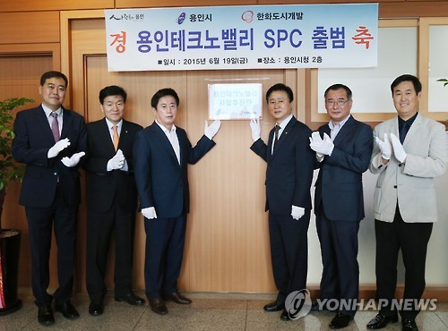 (용인=연합뉴스) 강창구 기자 = 용인시와 한화도시개발, 한화건설이 공동출자한 용인테크노밸리 특수목적법인(SPC) '㈜경기용인테크노밸리'가 19일 용인시청사에 사무실을 개소하고 본격 업무에 들어갔다.
