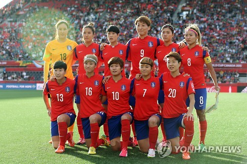 | △ 스페인전 승리의 주역 (오타와=연합뉴스) 신준희 기자 = 18일 오전(한국시간) 캐나다 오타와 랜스다운 경기장에서 열린 2015 캐나다 여자 월드컵 조별리그 한국과 스페인의 경기. 경기 시작 전 선발 출전 선수들이 사진 촬영을 하고 있다. 2015.6.18 hama@yna.co.kr |