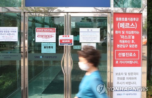 (용인=연합뉴스) 강창구 기자 = 중동호흡기증후군(메르스) 확진환자를 진료한 의사가 메르스 의심 증세를 보여 해당병원이 폐쇄됐다.