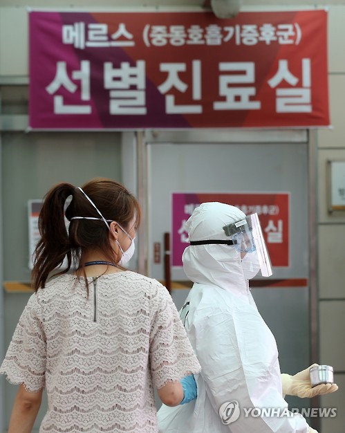 | △ 경주서 메르스 양성 발생 (경주=연합뉴스) 김준범 기자 = 12일 오후 중동호흡기증후군(메르스) 양성 확진 판정을 받은 A(59)씨가 치료받는 경북 경주 동국대 경주병원에 선별진료실이 마련돼 진료진이 오가고 있다. 2015.6.12 psykims@yna.co.kr |