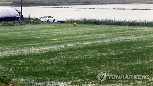 | △ '반가운 비(雨)' (파주=연합뉴스) 노승혁 기자 = 가뭄으로 어려움을 겪는 경기 북부지역에 20일 단비가 내렸다. 이날 오후 파주시 교하동 한 논에서 농민이 비를 맞으며 피를 뽑고 있다. 2015.6.20 nsh@yna.co.kr |