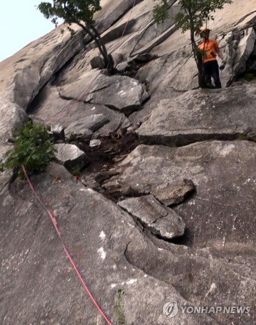 | △ 지난 13일 북한산 인수봉 낙석 사고 현장(연합뉴스 사진DB) |