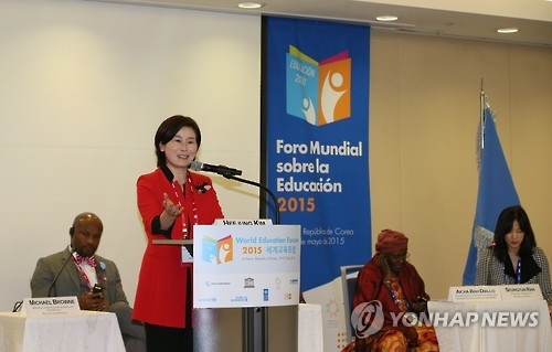 | △ 김희정 여성가족부 장관이 '양성평등 패널 토의'에서 기조연설을 하고 있다.(연합뉴스 자료사진) |