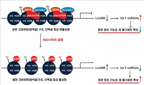 연구에 따르면 방광암에서 MacroH2A1의 발현이 감소하자 암을 유발하는 Lin28B의 발현이 촉진됐다.