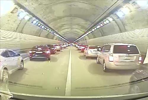 이에 구급차가 갓길을 통해 터널로 진입하려고 시도하자 차량들이 서서히 길을 비켜주기 시작했다.