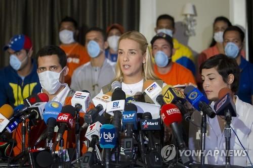| △ 반정부 시위를 선동한 혐의로 투옥된 베네수엘라 야권 지도자 레오폴도 로페스가 23일(현지시간) 한달만에 단식을 중단한 뒤 아내 릴리안 틴토리가 기자회견을 통해 그의 편지를 대독하고 있다.(EPA=연합뉴스) |