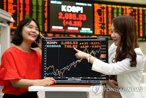 이날 코스피지수는 4.33포인트(0.21%) 오른 2,085.53으로 마감하며 6거래일 연속 상승세를 이어갔다.