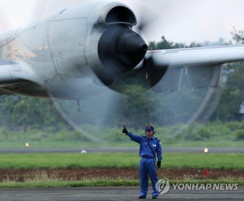 | △ 23일 일본해상자위대 P3C기가 필리핀 팔라완섬의 공항을 이륙하는 장면(EPA.연합뉴스) |