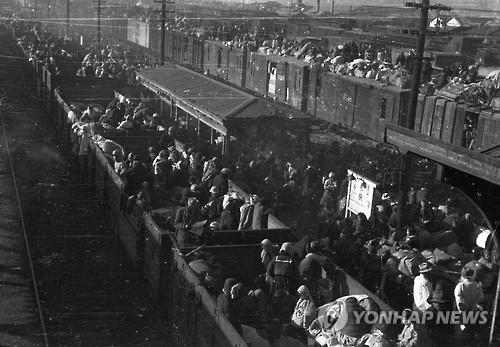 | △ '전쟁의 참상 렌즈에' 6·25 당시 희귀사진 대거 공개 (베이징=연합뉴스) 홍제성 특파원 = 연합뉴스가 23일 중국 베이징(北京) 소재 국제적십자위원회(ICRC) 동아시아대표처를 통해 입수한 사진들은 서울, 부산, 대구, 거제도, 평양, 판문점 등 한국 전쟁의 비극을 겪은 한반도 곳곳의 모습이 담겨 있다. 사진은 1950년 12월 대구에서 촬영한 피난민들. 2015.6.23 |