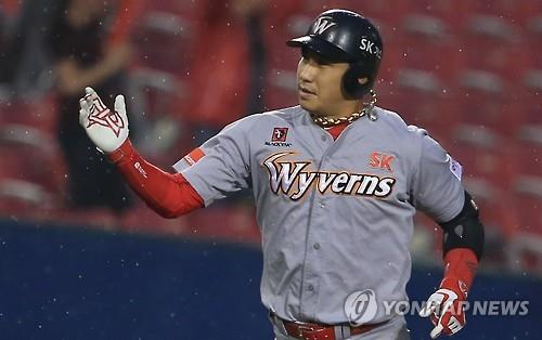 (서울=연합뉴스) 신창용 기자 = SK 와이번스의 외야수 김강민(33)과 포수 이재원(27)이 기분 좋은 자극을 주고받으며 동반 폭발했다.