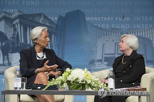 | △ 크리스틴 라가르드 IMF 총재(좌)와 재닛 옐런 연준 의장(우) (AP=연합뉴스 자료사진 |