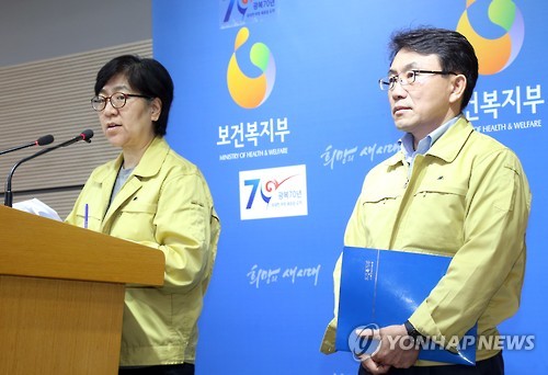 | △ 기자들 질문에 답하는 보건복지부 (세종=연합뉴스) 배재만 기자 = 정은경 중앙메르스대책본부 현장점검반장이 26일 오전 정부세종청사 보건복지부 공용브리핑룸에서 열린 정례브리핑에서 중동호흡기증후군(메르스) 환자 현황에 대한 기자들의 질문에 답하고 있다. 오른쪽은 권덕철 총괄반장. |