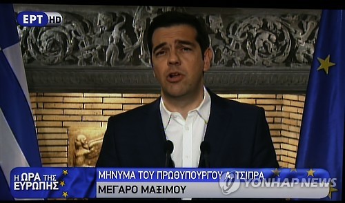 (아테네 AFP·AP=연합뉴스) 알렉시스 치프라스 그리스 총리는 국제 채권단이 제시한 구제금융 및 경제개혁 방안에 대한 찬반 국민투표를 내달 5일 실시하겠다고 발표했다.