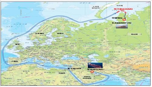 아시아에서 유럽을 북극해로 가면 운항거리가 약 1만5천㎞로, 인도양과 수에즈 운하를 거쳐 가는 항로보다 7천여㎞ 짧다. 운항일수도 약 10일 줄어든다.
