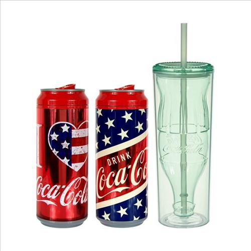 아이콘 텀블러(9천원)의 재질은 유리와 플라스틱의 장점을 결합한 트라이탄으로 6시간 동안 음료를 차갑게 유지할 수 있다. 음료를 담았을 때 뒤집힌 코카콜라 병 모양이 드러나는 점이 특징이다.