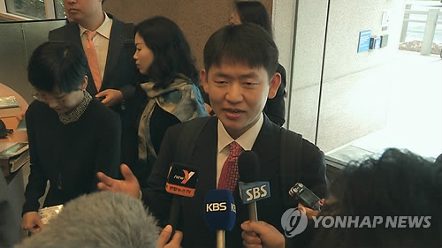 | △ 미국 워싱턴에서 론스타를 상대로 5조원대의 국가소송을 시작한 한국정부 합동대응팀의 김철수 법무부 국제법무과장이 지난달 15일(현지시간) 세계은행 산하 국제투자분쟁해결센터(ICSID) 1층에서 워싱턴 특파원들과 만나 이번 소송에 임하는 각오를 밝히고 있다. (연합뉴스 자료사진) |